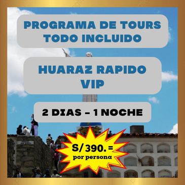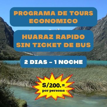 Laguna de Llanganuco - Callejon de Huaylas / Chavin de Huantar, Laguna Querococha / Laguna Paron - Cordillera Blanca / Nevado Pastoruri - Ruta del cambio climatico / City Tours - Baños termales de Monterrey